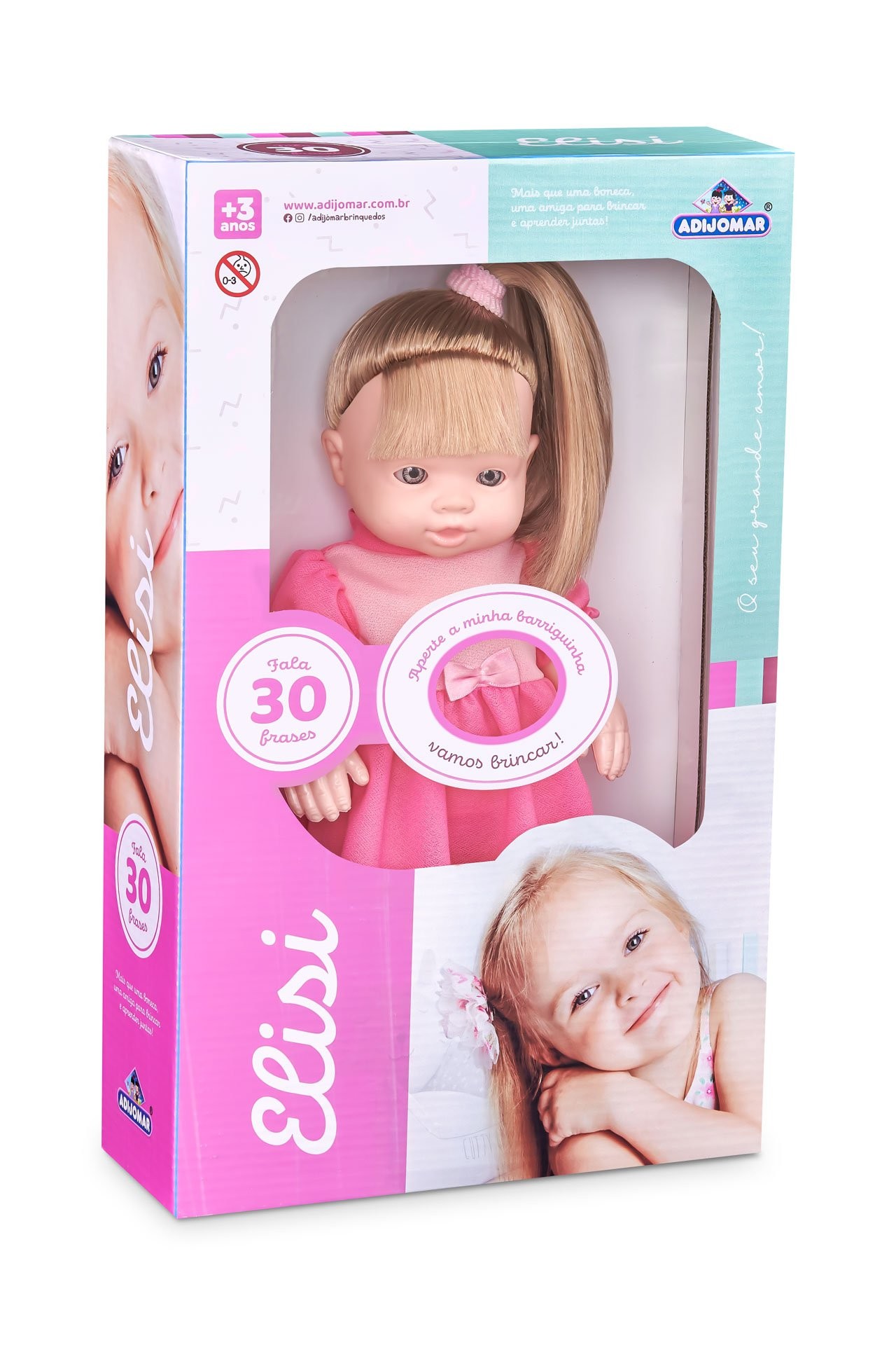 A Boneca Elisi é delicada, charmosa e perfeita para momentos especiais de brincadeira. Fala 30 frases divertidas que tornam a interação ainda mais envolvente. Basta apertar a barriguinha para ouvi-la falar. Possui lindo vestido rosa com detalhes delicados e laço na cintura. Seu cabelo com franjinha e rabo lateral deixa o visual ainda mais encantador. Ideal para estimular a imaginação e o cuidado durante as brincadeiras. Proporciona momentos de carinho e aprendizado lúdico. Indicada para crianças a partir de 3 anos.
