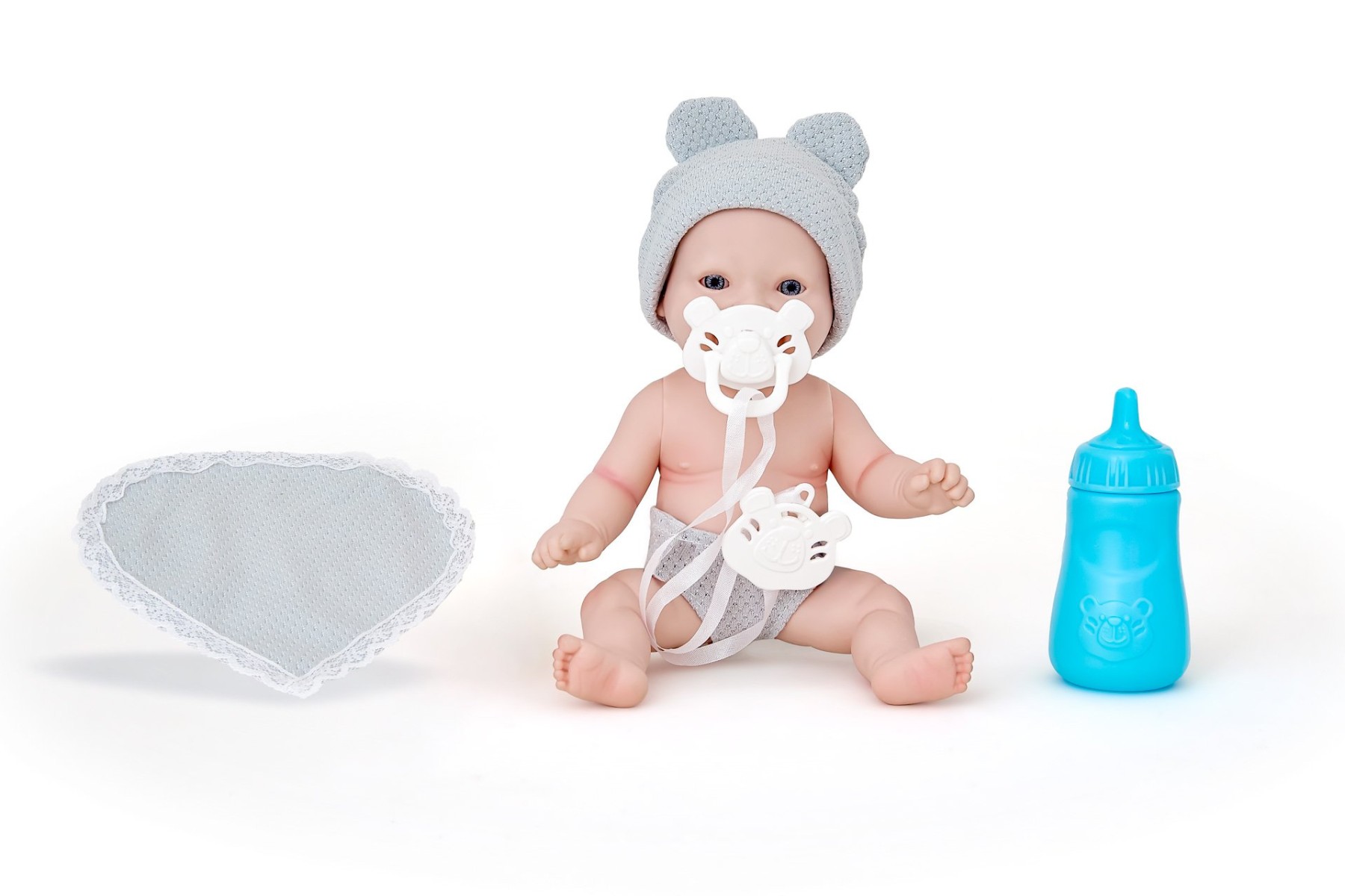 Possui expressão delicada e detalhes que lembram um bebê de verdade.