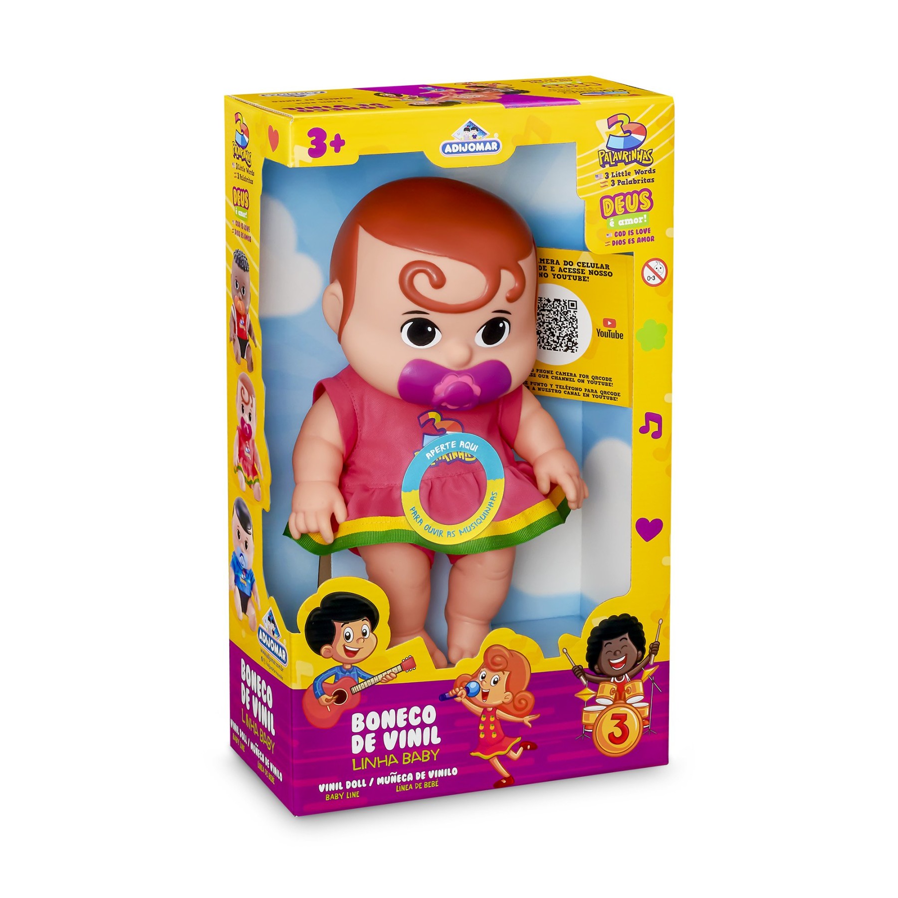 A Sarah com Mecanismo é inspirada no sucesso infantil 3 Palavrinhas. Com visual delicado e fiel à personagem, encanta as crianças. Possui mecanismo sonoro que toca musiquinhas ao apertar. Produzida em vinil macio, ideal para brincar e abraçar. Estimula o desenvolvimento sensorial e a interação musical. Perfeita para fãs do universo 3 Palavrinhas. Acabamento cuidadoso e cores vibrantes. Indicada para crianças a partir de 3 anos. - Informação Adicional