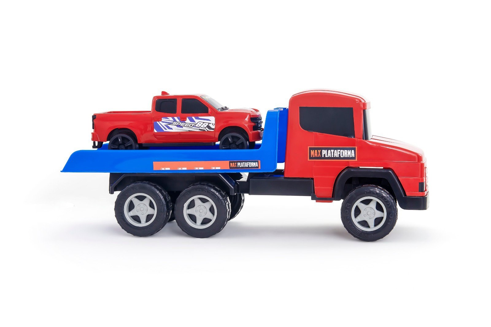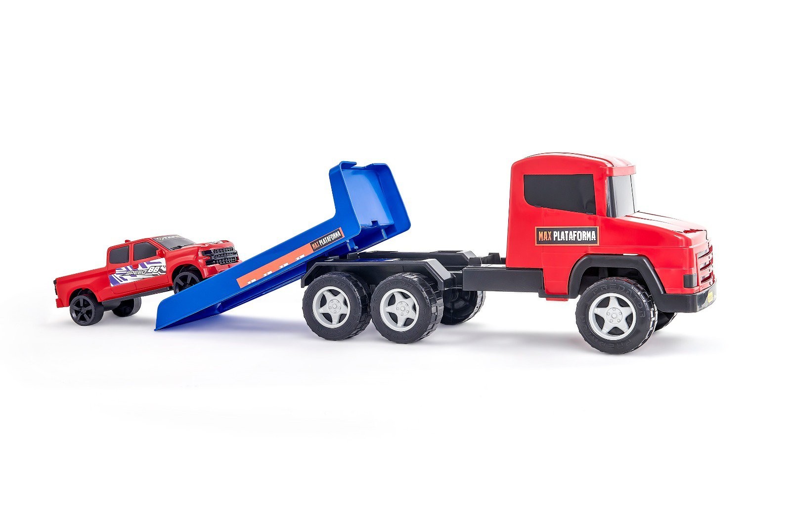 Com plataforma articulável que sobe e desce, a brincadeira fica ainda mais real e cheia de movimento. Acompanha Pickup GT para carregar, descarregar e criar aventuras cheias de velocidade. Suas rodas grandes e resistentes enfrentam qualquer trajeto, da cidade às pistas mais radicais.