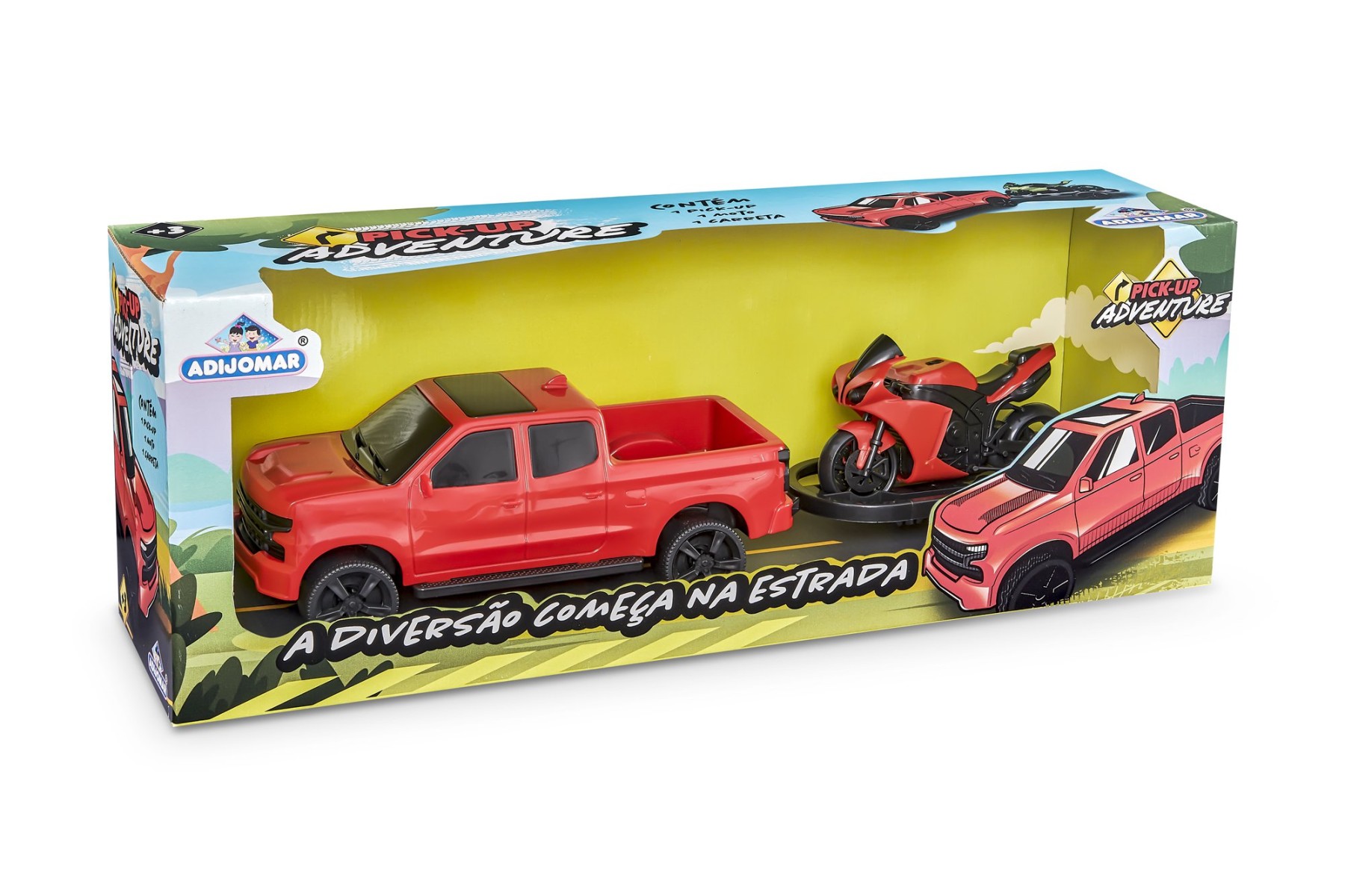 Acelere para a diversão com a incrível Pick Up Adventure! Com visual esportivo e rodas robustas, ela está pronta para qualquer missão radical. Acompanha trailer com uma super moto esportiva para levar a emoção aonde você quiser. É só engatar, empurrar e sair criando aventuras cheias de velocidade e ação. Prepare-se para viver desafios eletrizantes com a Pick Up Adventure! - Informação Adicional
