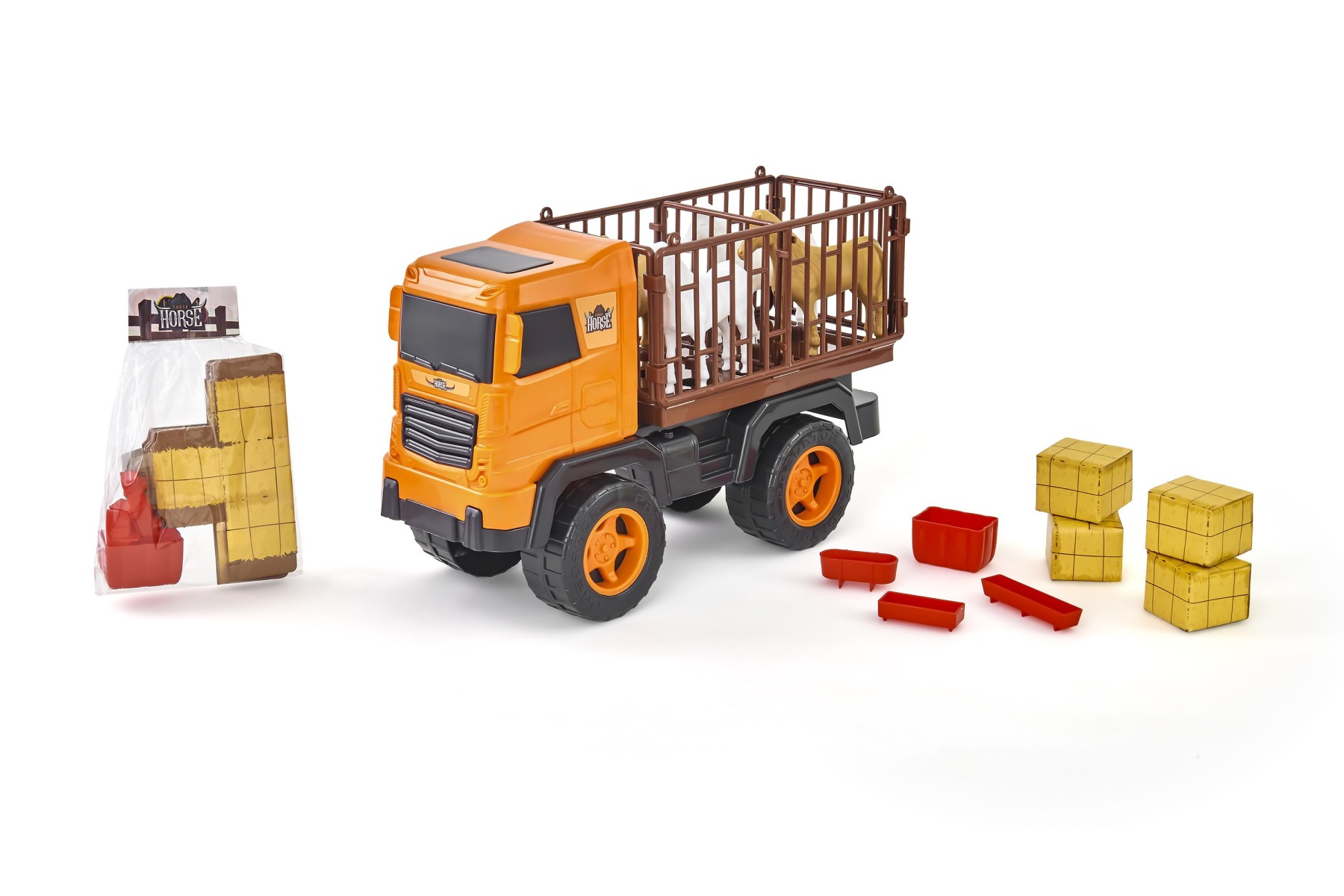 O Truck Horse da Adijomar é um super caminhão fazendeiro pronto para a ação. Ele transporta lindos cavalinhos com segurança na carroceria cercada. Acompanha fardos de feno e acessórios para deixar a brincadeira ainda mais realista.