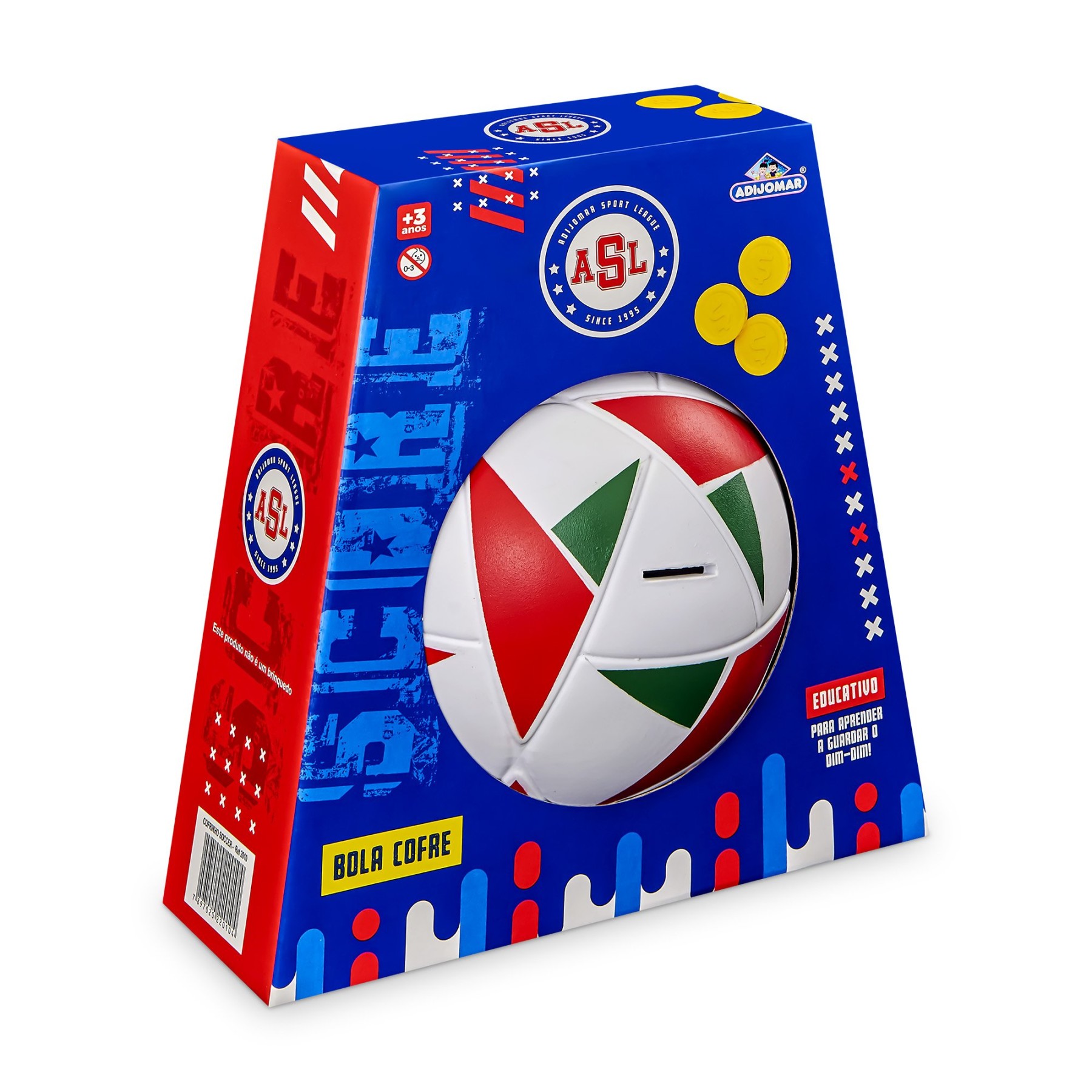 O Cofrinho Soccer da Adijomar é perfeito para pequenos craques cheios de sonhos. Com design inspirado na bola de futebol, ele traz cores vibrantes e cheias de atitude. Basta colocar as moedas na abertura e começar a guardar como um verdadeiro campeão!