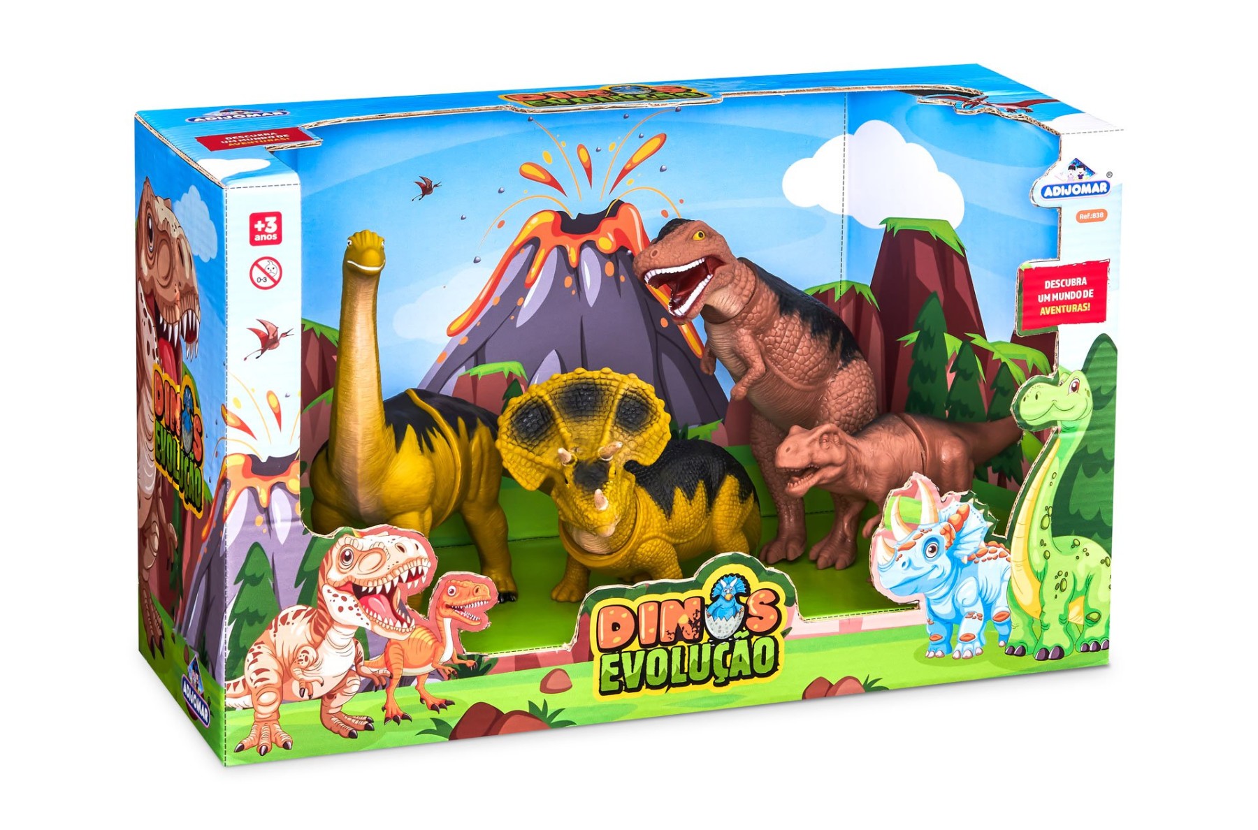 Um kit completo de dinossauros para as crianças viverem aventuras jurássicas.