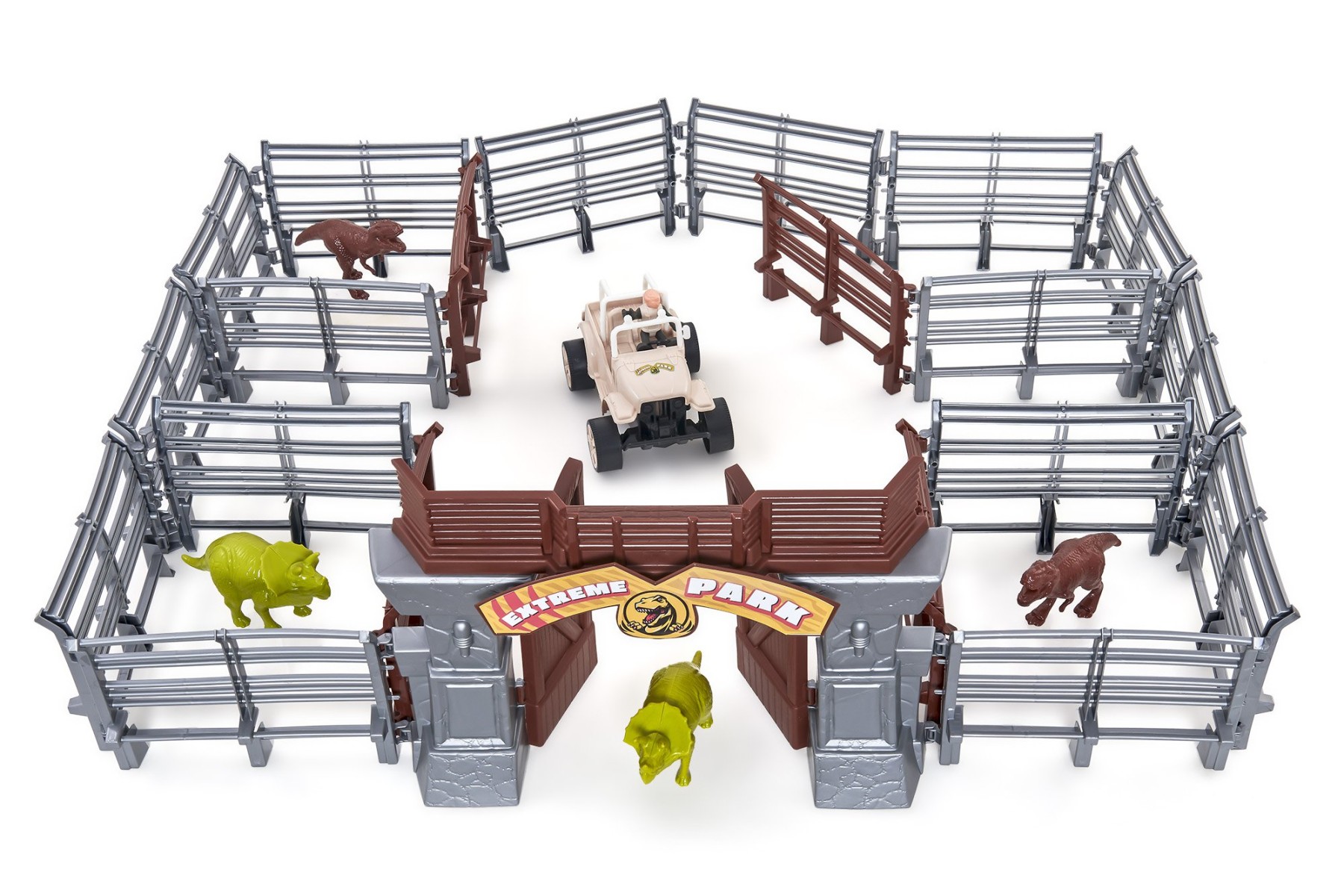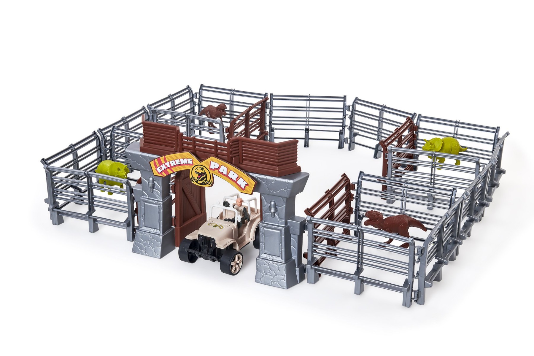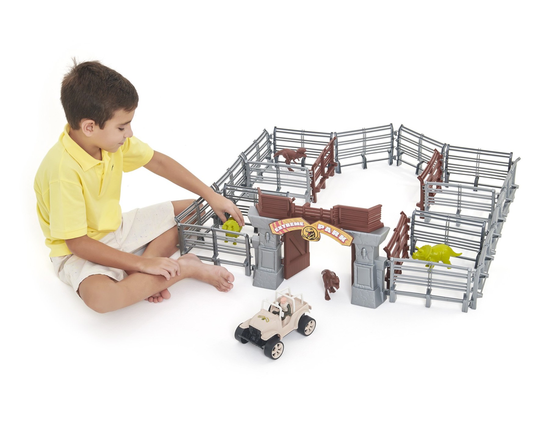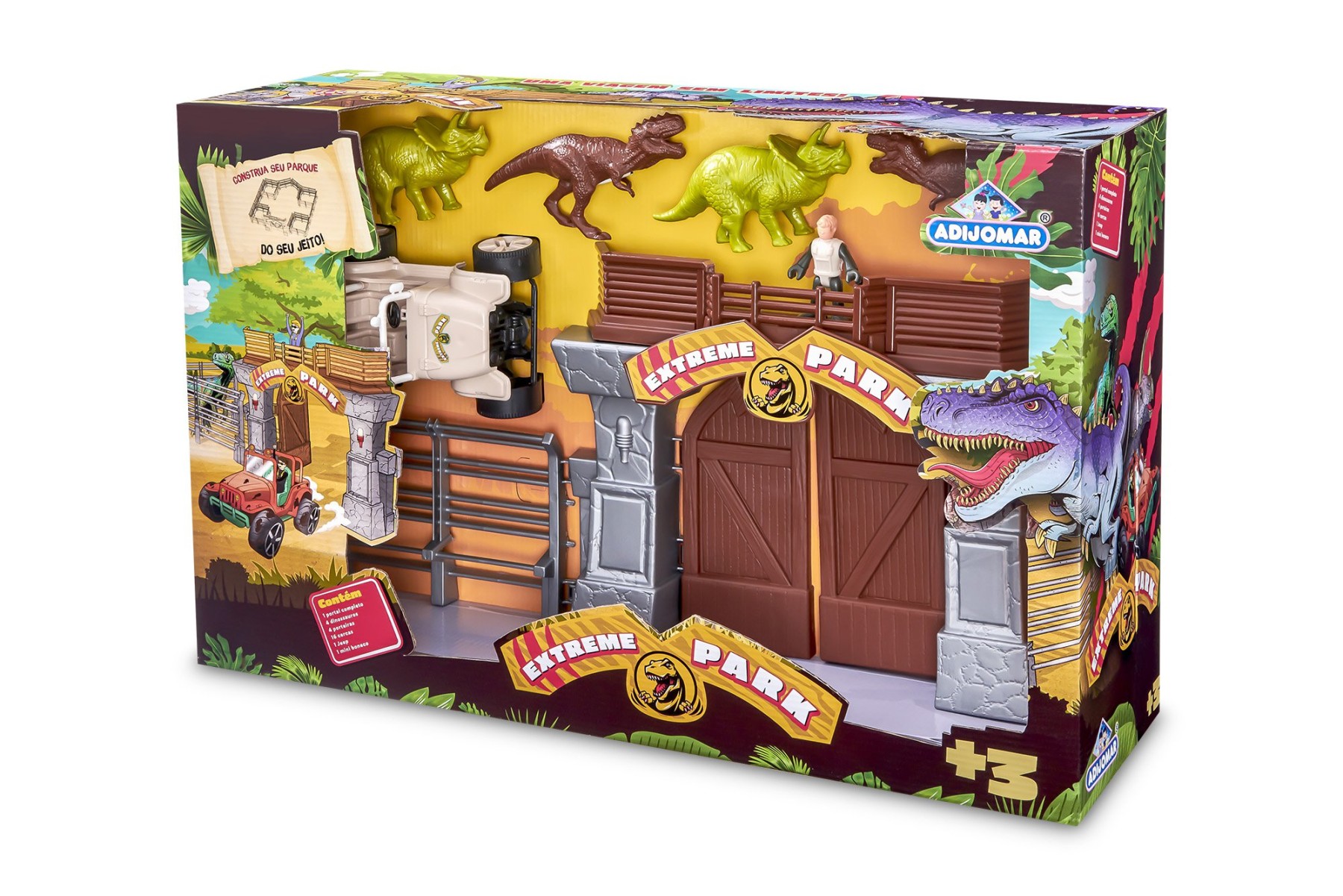 O Extreme Park Max é o parque jurássico definitivo para muita aventura. Com estrutura modular, a criança pode montar o cercado do seu jeito. Possui portão principal com abertura e área central de controle. Acompanha jipe com personagem para explorar o parque. Inclui dinossauros para criar histórias cheias de ação. Estimula a criatividade e a imaginação. Desenvolve coordenação motora e noção espacial. Indicado para crianças a partir de 3 anos. - Informação Adicional