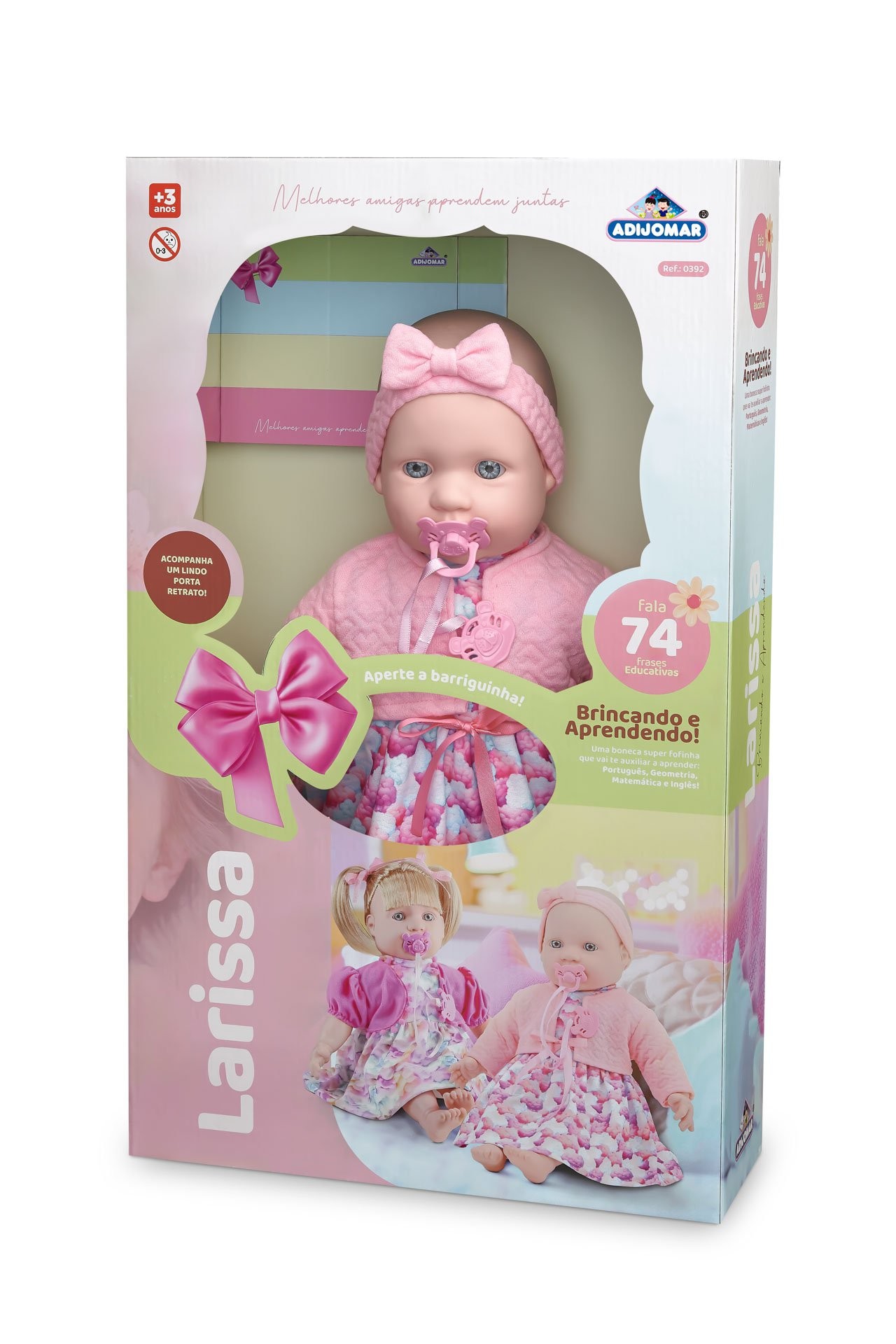 A Larissa Bebê é uma boneca delicada e encantadora, perfeita para momentos de carinho e aprendizado.