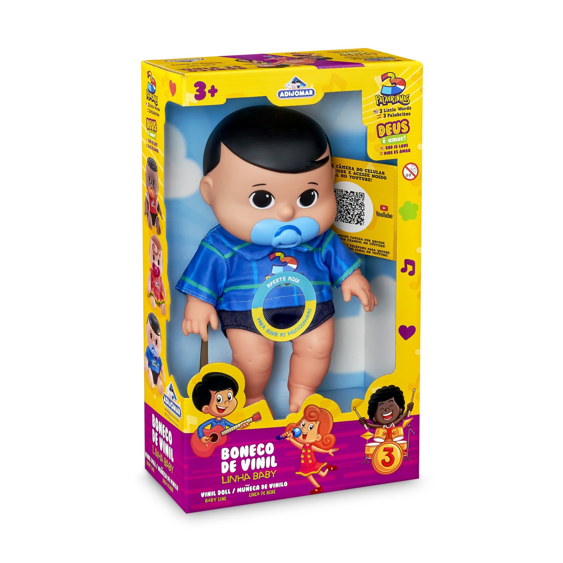 O Miguel com Mecanismo é inspirado no sucesso infantil 3 Palavrinhas. Com visual fiel ao personagem, encanta as crianças e fãs da série. Possui mecanismo sonoro que toca musiquinhas ao apertar. Produzido em vinil macio, ideal para brincar e abraçar. Estimula a coordenação motora e a percepção auditiva. Perfeito para momentos de diversão e aprendizado musical. Acabamento de qualidade e cores vibrantes. Indicado para crianças a partir de 3 anos. - Informação Adicional