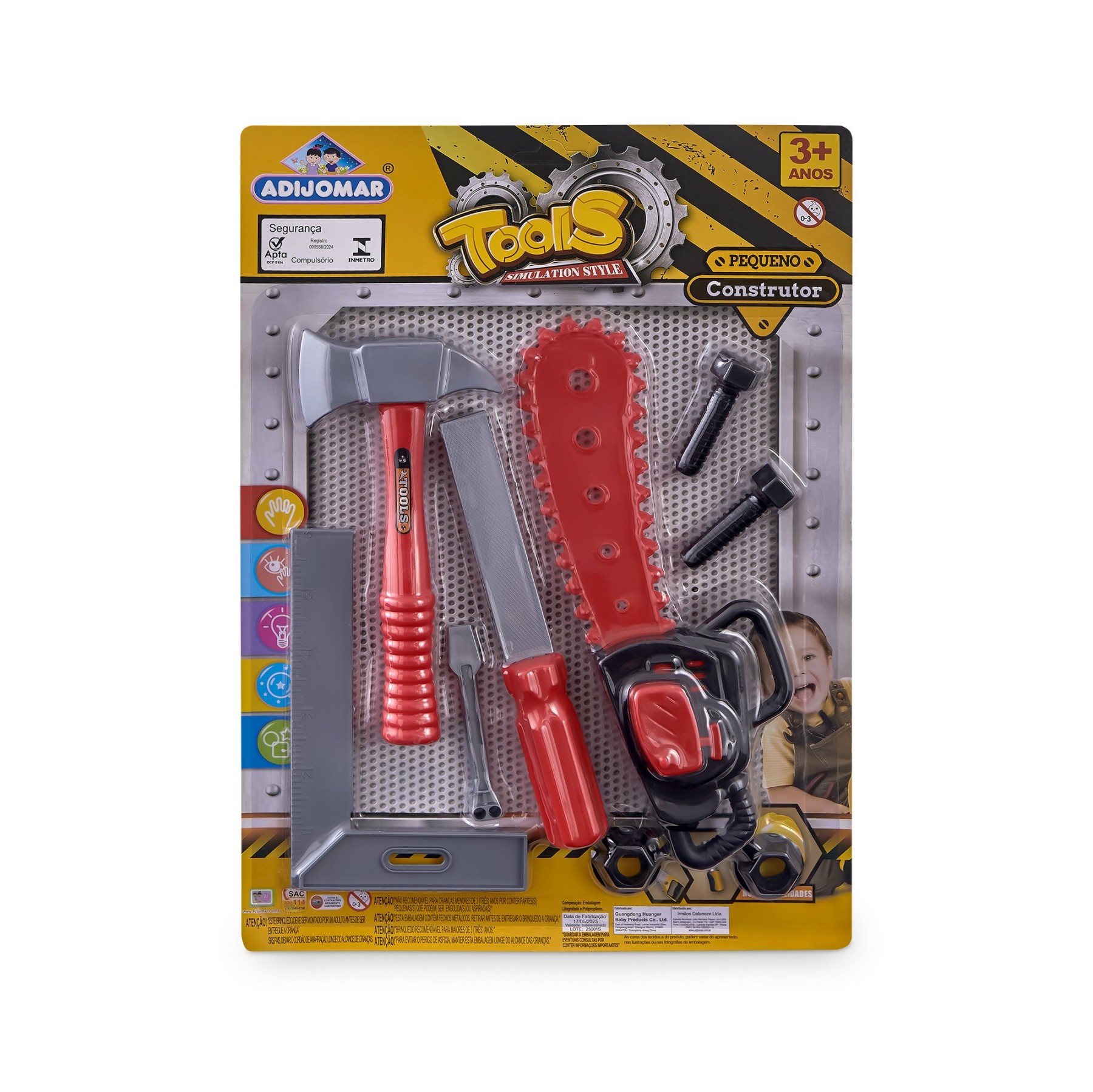 A Solapa Tools – Moto Serra é ideal para os pequenos construtores que adoram aventuras cheias de imaginação. O kit acompanha moto serra de brinquedo, ferramentas auxiliares, parafusos e peças para montar, proporcionando uma experiência divertida e cheia de faz de conta. Perfeito para estimular a criatividade, coordenação motora e o desenvolvimento das habilidades manuais. Um brinquedo seguro, leve e pensado para crianças a partir de 3 anos. - Informação Adicional